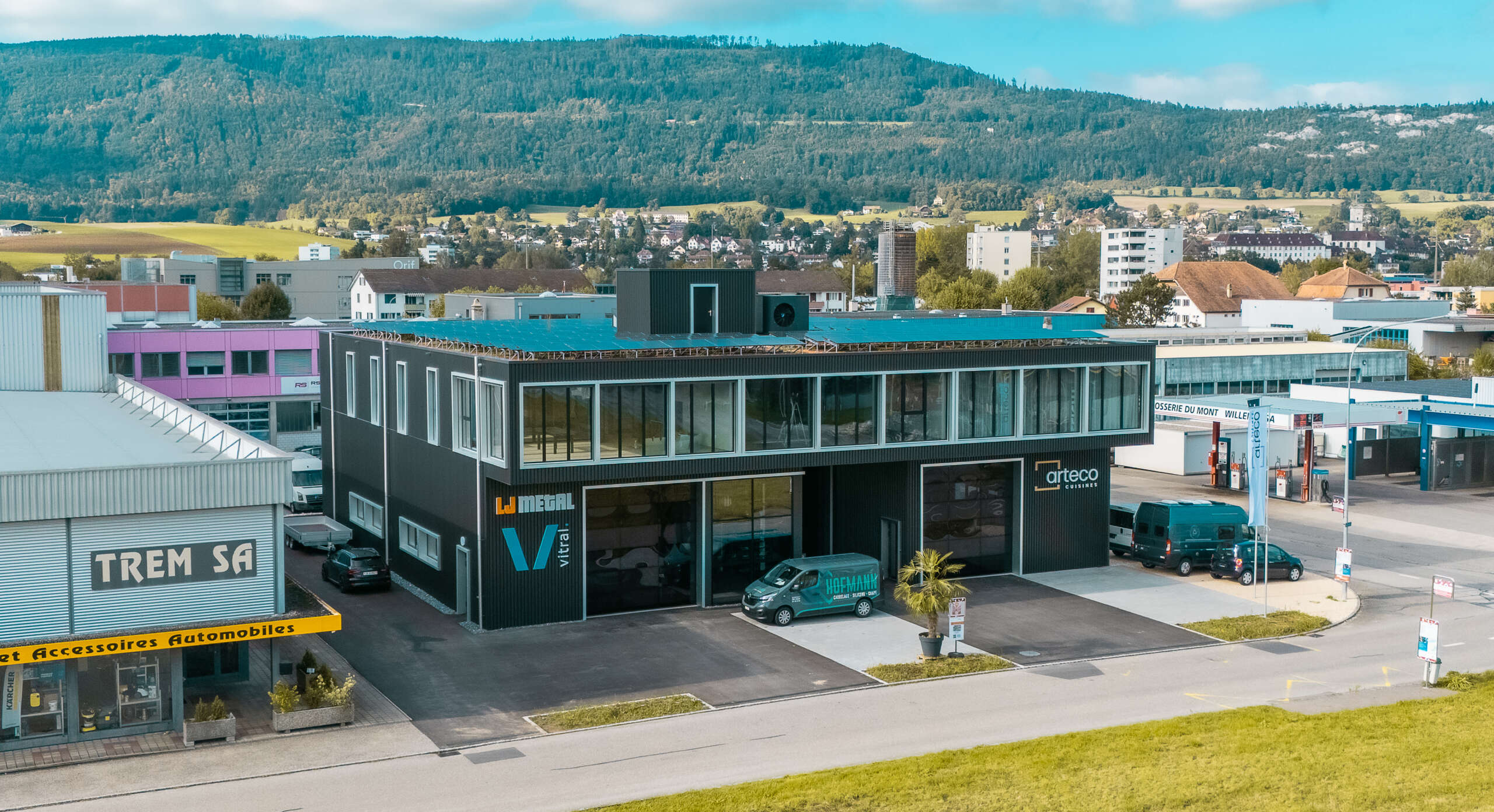 Ce bâtiment industriel à affectations multiples (commercial, artisanal) constitue le projet pilote de LOSTEL SA. Il accueille désormais notre siège social et symbolise notre engagement pour une construction locale de qualité, durable et tournée vers l’avenir.